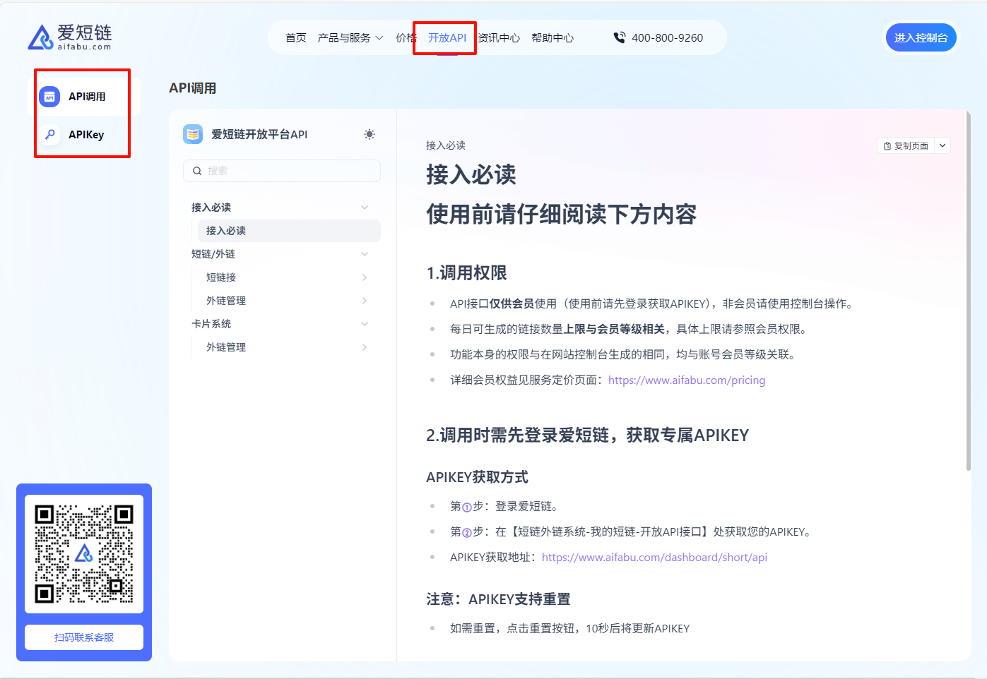 第2步:在【短链外链系统-我的短链-开放API接口】处获取您的APIKEY。