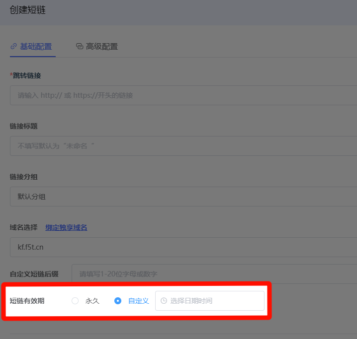 创建短链接时,进入“高级设置”选项,即可自由设定链接的有效时间。