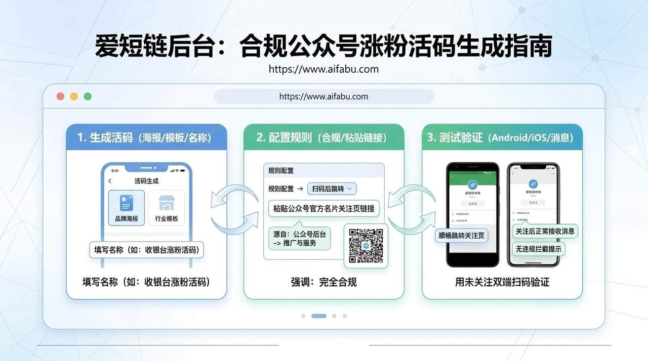 你是不是也踩过这些引流坑?印了几十张海报、发了上百份传单,扫码的人不少,真正转粉的没几个;好不容易涨点粉,还留不住? 别愁,今天就教你用「爱短链」(https://www.aifabu.com)微信活码,合规引导公众号涨粉,低成本解决引流转粉留客难题!