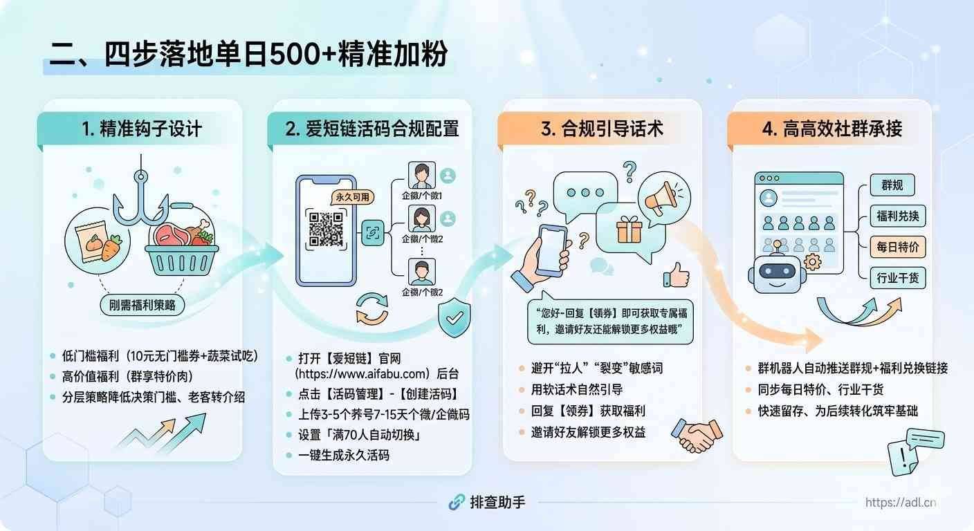 做中小商家或私域创业者的你,是不是总被「精准粉少、加粉慢」的难题卡脖子?试了不少引流方法却收效甚微? 别慌!今天就用爱短链活码的实战玩法,手把手教你合规突破加粉瓶颈,轻松实现单日500+精准加粉,每一步都能直接落地!