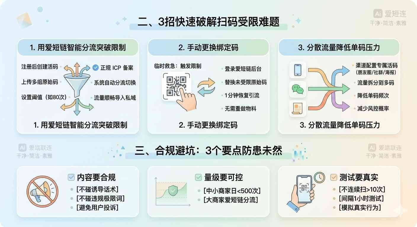 刚挂的微信活码就弹窗“扫码超限”?私域流量卡在门口急得直挠头?别慌!搭配有正规ICP备案的专业活码工具爱短链(https://www.aifabu.com),用3招就能快速破解限流难题,让私域引流全程顺畅不卡壳!
